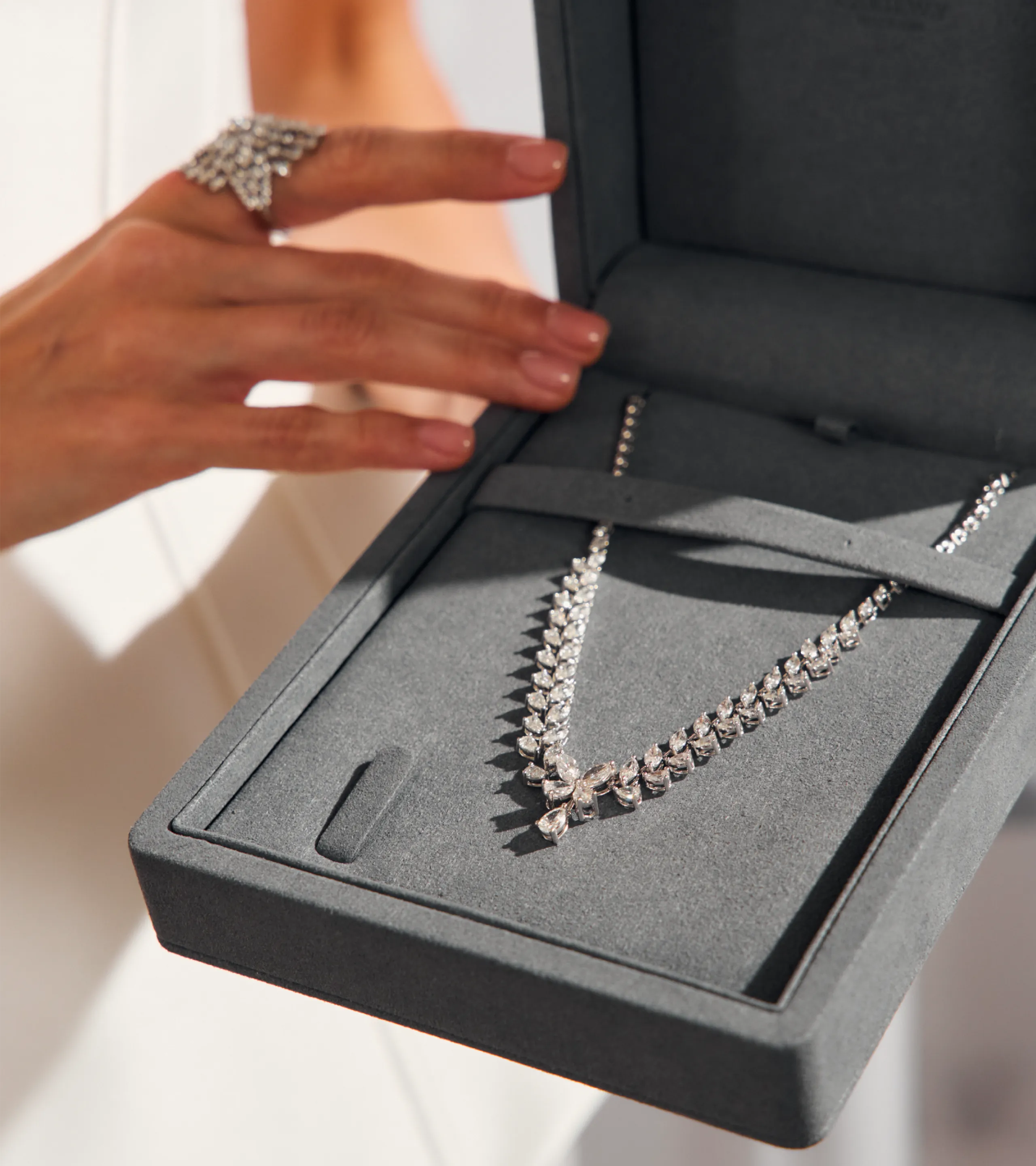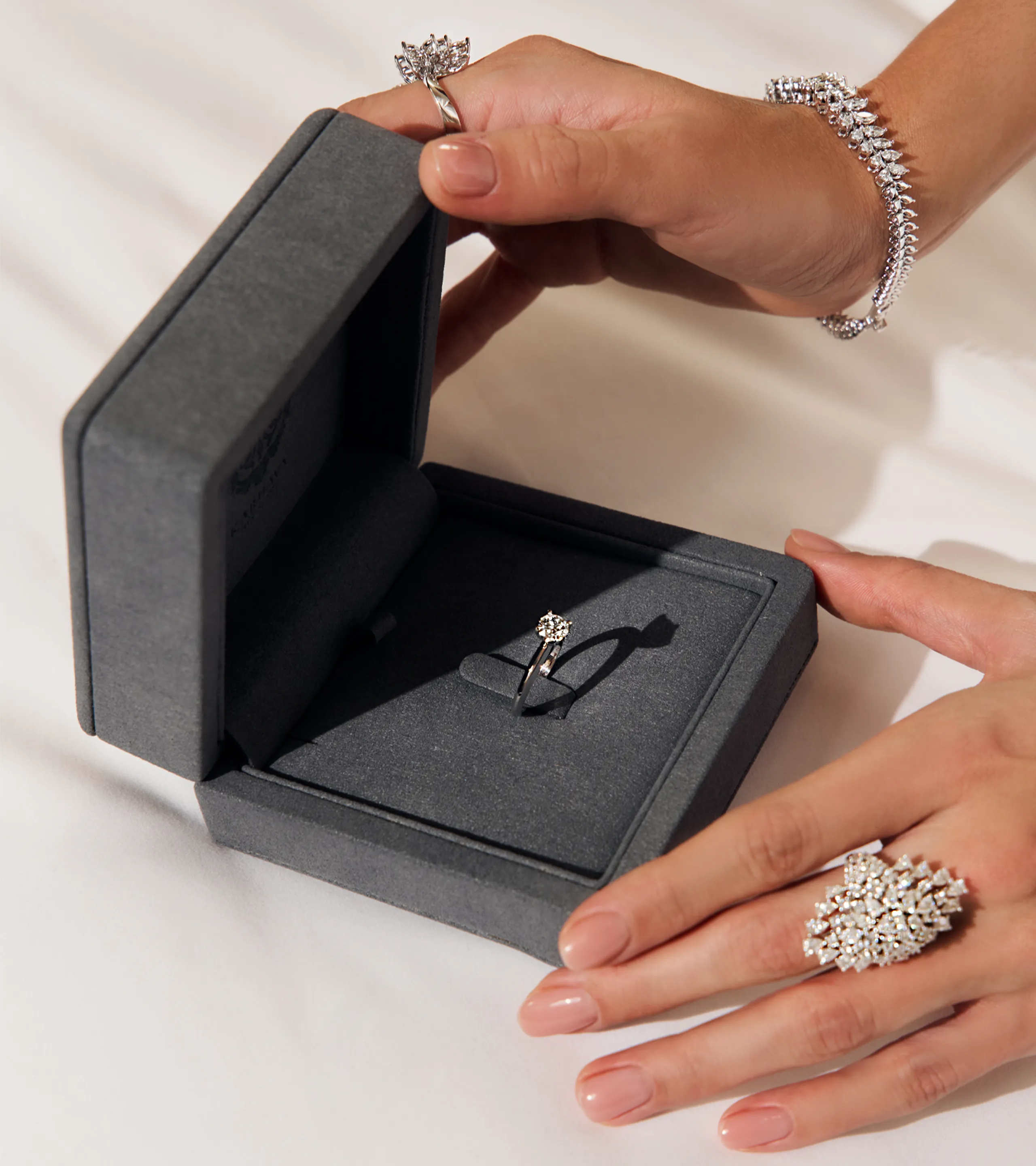 Мы уделяем особое внимание тому, чтобы бриллиант не просто соответствовал высоким характеристикам, а становился сердцем изделия выразительным, благородным и гармоничным.