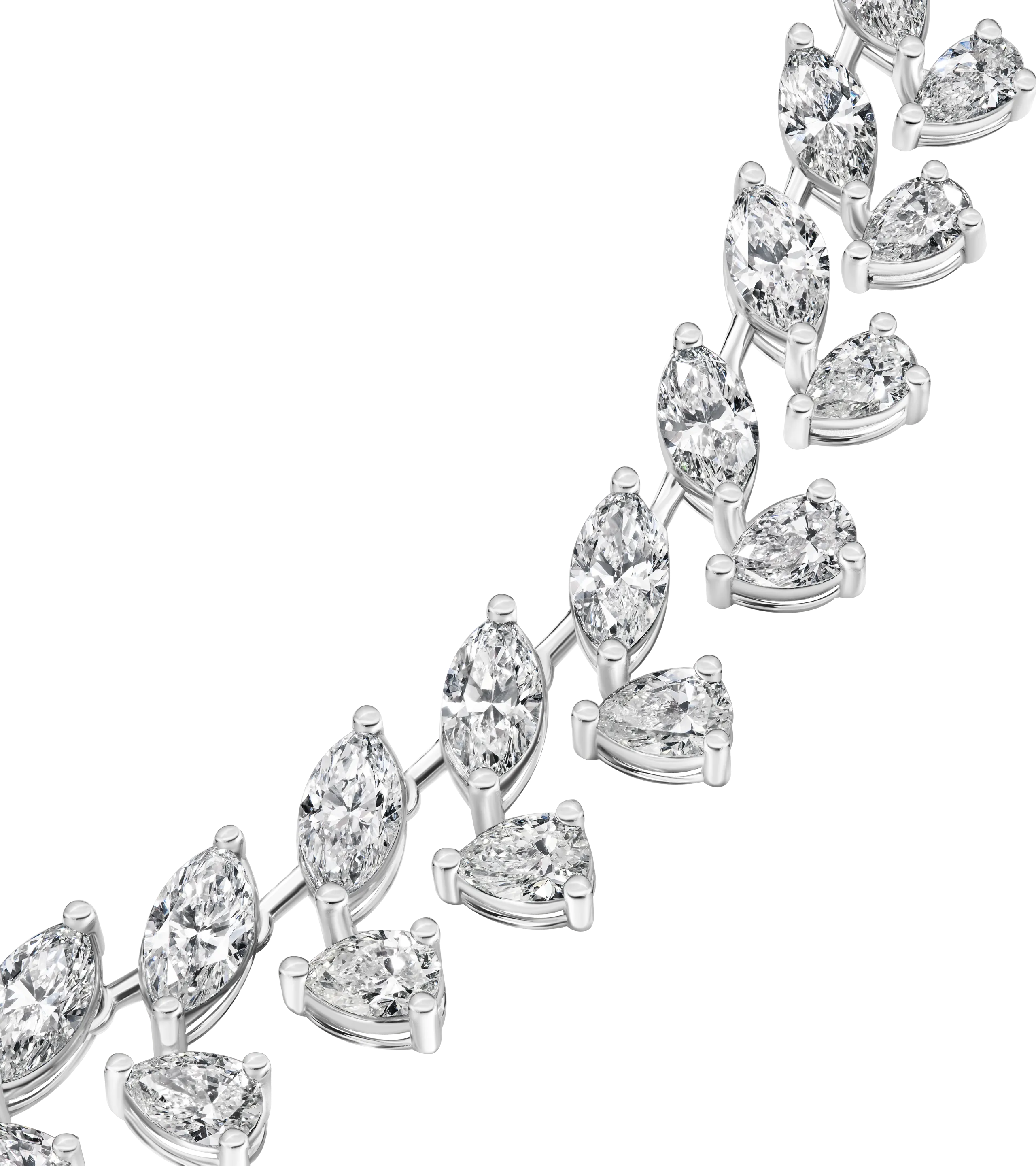 Эксклюзивное колье из белого золота 750 пробы с природными бриллиантами. Изящный ритм линий и деликатное сияние создают утонченный образ.